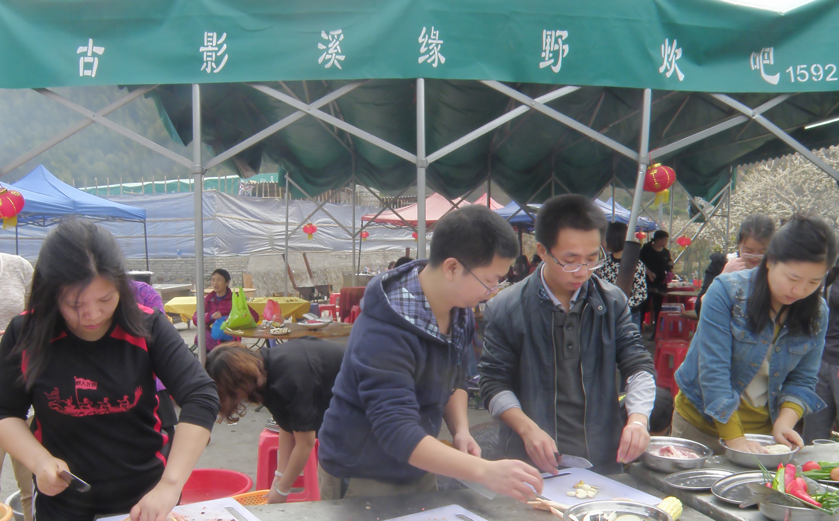 中午到达溪头村开始我们的野炊活动,大神们各显神通,拾柴火、生火、扇风、刷锅、取食、摘菜、主厨,在大家的通力合作下,鲜香美味的农家菜端上餐桌。大家围坐在李花下的餐桌旁享受美食,欣赏美景,无比惬意。