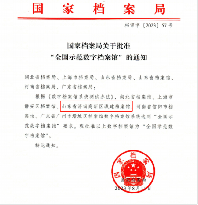济南高新区城建档案馆成功创建“全国示范数字档案馆”