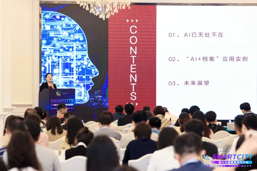 活动上,世纪伟图总经理崔丽梅带来了“AI助力建设城建档案新时代”主题报告,介绍了人工智能技术在城建档案行业的新应用场景,以及世纪伟图在助力中国城建档案数智化发展方面的不断探索。与其他高校知名学者、城建档案行业一线管理者以及城建档案行业领先企业相关负责人等从不同维度探讨城建档案智慧化的新经验和新理念。
