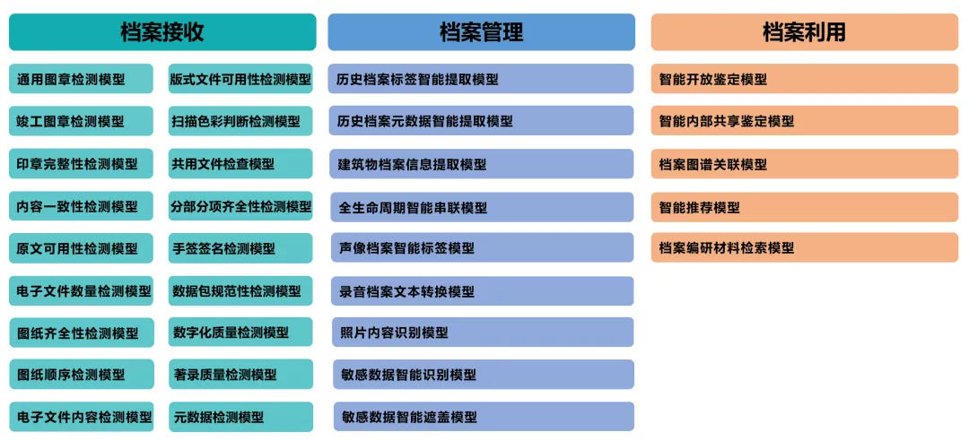 通过数据分析构建多维度的档案标签体系和数据模型,对历史城建档案文件进行智能化处理、自动生成结构化元数据信息标识,结合自动化著录减轻档案工作人员负担。利用自然语言技术收集和预处理档案内容数据,辅助档案整理,提升归档效率。针对声像档案,借助OCR图像识别、人脸识别、语音识别等相关算法能力建立标签体系,解决查找难、利用效率低等难题。