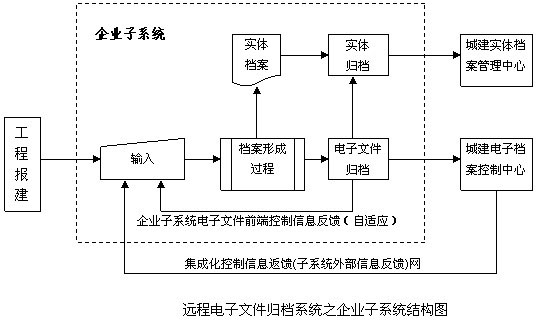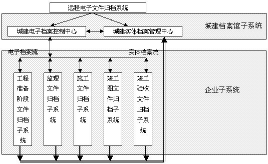 城建电子文件集成化管理模式,是将市城建档案馆及参与城市建设活动的建设单位、施工单位、监理单位、设计单位等作为一个人造系统一“电子文件归档系统”,并通过系统内各种要素间形成的合力来实现“由文件形成单位将建设工程记录、通过电子文件编辑模板录入、并由系统的组卷规则自动组卷、归档”的集成化管理目标。